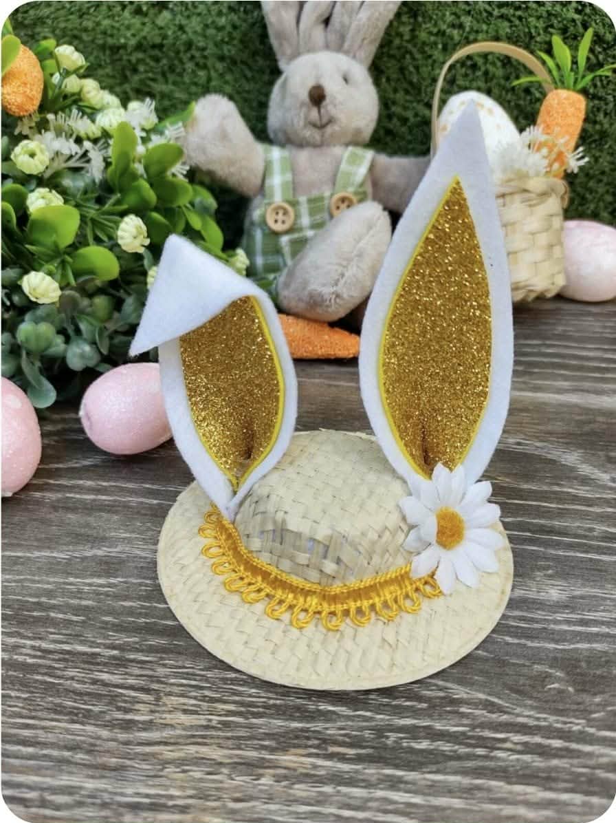 Chapéu: Tamanho: 9cm. Chapéu de palha e orelhas e feltro e eva. Fita para amarrar 30cm de cada lado + 2 elásticos para cada lado.
